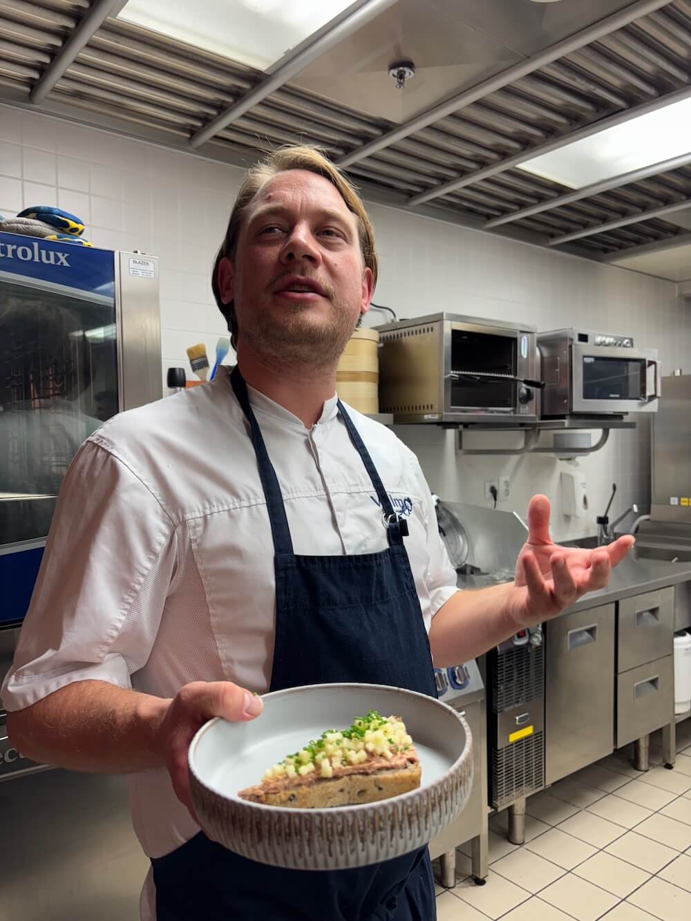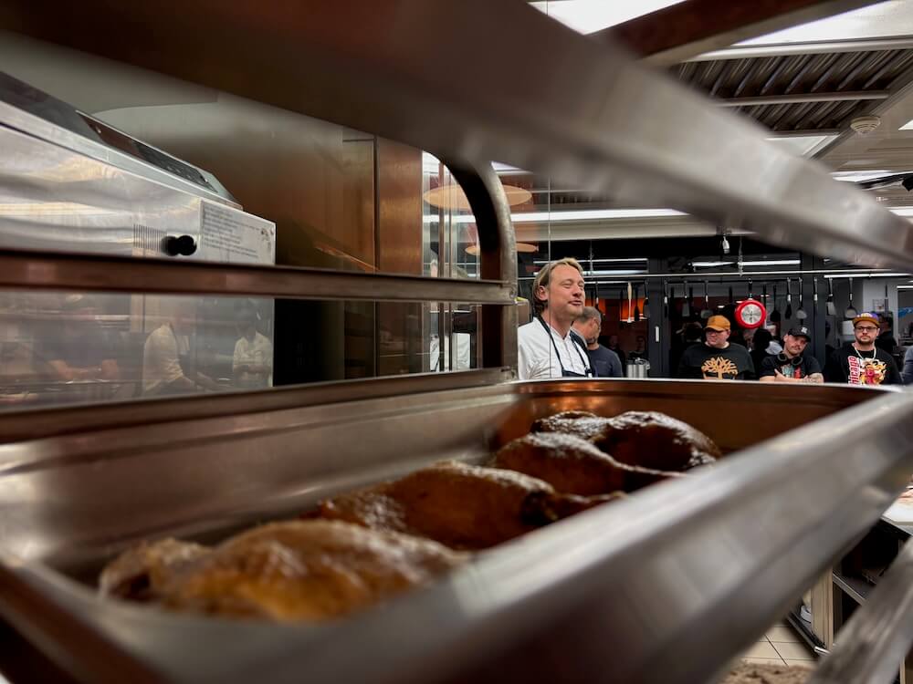 Masterclass se konala na Martina (všechno nejlepší k svátku!) a tématem byla husa, ale došlo i na další pokrmy. Bylo zajímavé poznávat, jak se mohou klasické suroviny proměňovat, co se všechno dá dělat nového – i starého: třeba nechat maso ležet na seně je prastará metoda, která dodá nejen na chuti.