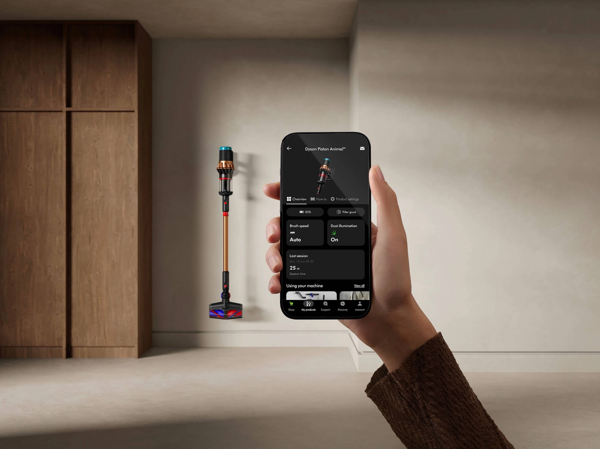 „V průběhu let jsme díky propojení designu, technologií a nejmodernějšího výzkumu přetvořili podobu našich produktů. Vývoj inovativních motorů, ohřívačů, separačních systémů a aerodynamiky nám umožnil radikálně změnit formát a zároveň vyrábět vysoce výkonné přístroje. Vynalezli jsme cyklonový vysavač bez ztráty sacího výkonu, vysokorychlostní motor, bezdrátový tyčový vysavač, robotickou vizuální navigaci, bezlopatkový ventilátor, vysoušeč rukou Airblade a ultrarychlý digitální fén Supersonic. Dnes představujeme novinky spolu s inovovanými produkty Dyson,“ uvedl James Dyson.