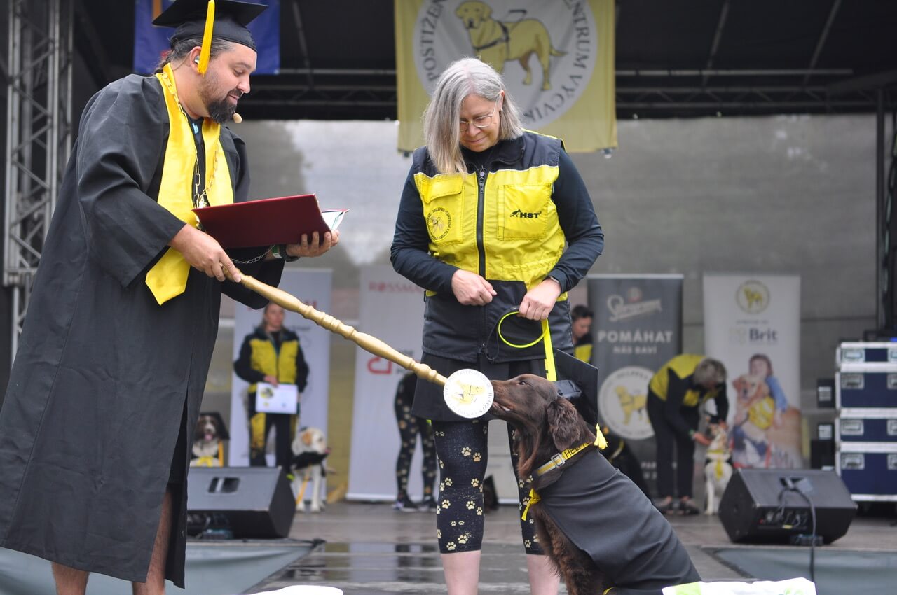 Slavnostní událost si nenechali ujít dárci, dobrovolníci, rodiny klientů ani známé osobnosti, které se ujaly symbolického předávání psích asistentů. O příjemnou atmosféru se postarali moderátoři Patricie Solaříková, Jan Čenský a Mirek Konvalina, kteří provázeli programem celého dne plného hudby, ukázek výcviku a setkávání absolventů minulých ročníků.