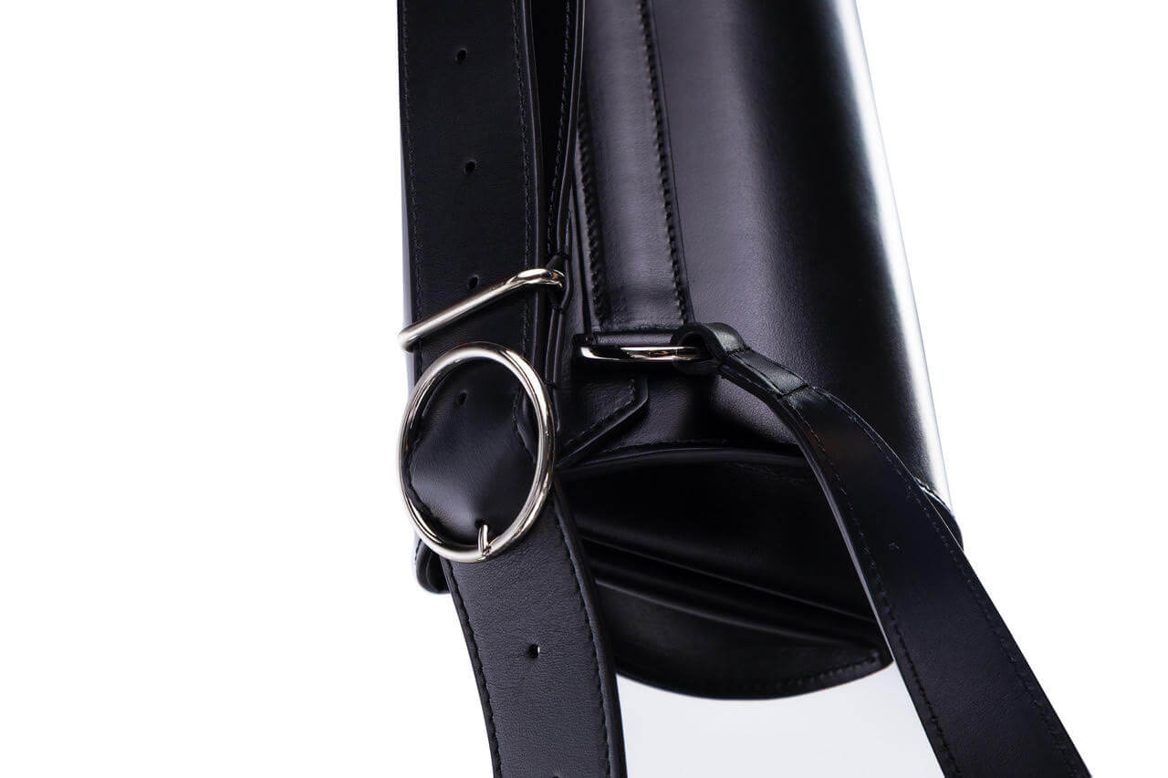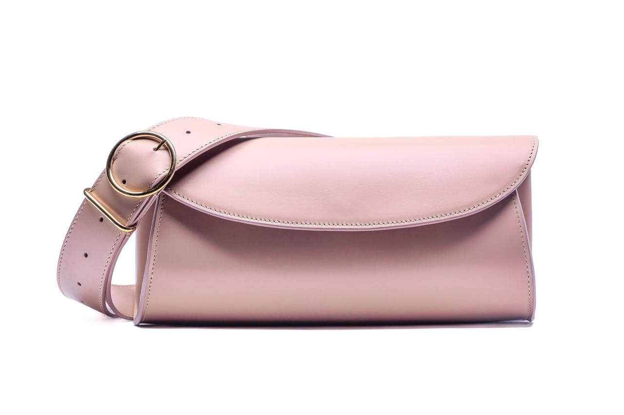 Nikė 01 v barvách Smoky Grey / Dusty Pink / Jet Black – cena: 15.680 Kč – crossbody klopnová kabelka netradiční konstrukce a tvarosloví. Kabelka disponuje uvnitř kapsou na zdrhovadlo, zapíná se na magnetický závěr s pojistkou proti náhodnému otevření. Popruh je opatřen přezkou o šířce 4 cm.
