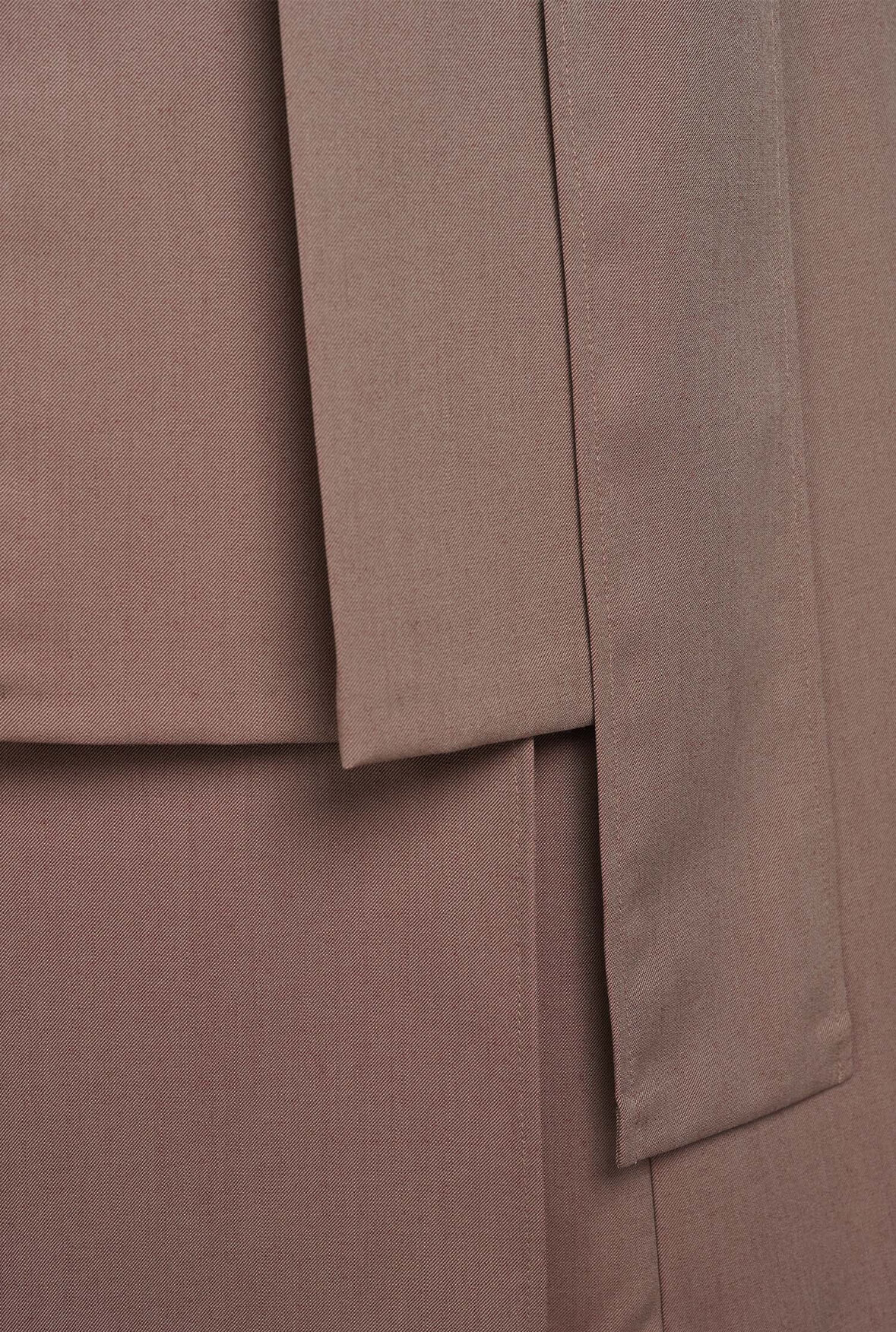 Precizně střižená kalhotová sukně v sobě skrývá sofistikovaný minimalismus a v nabídce je v přísné černé i jemnější růžovo hnědé barvě.