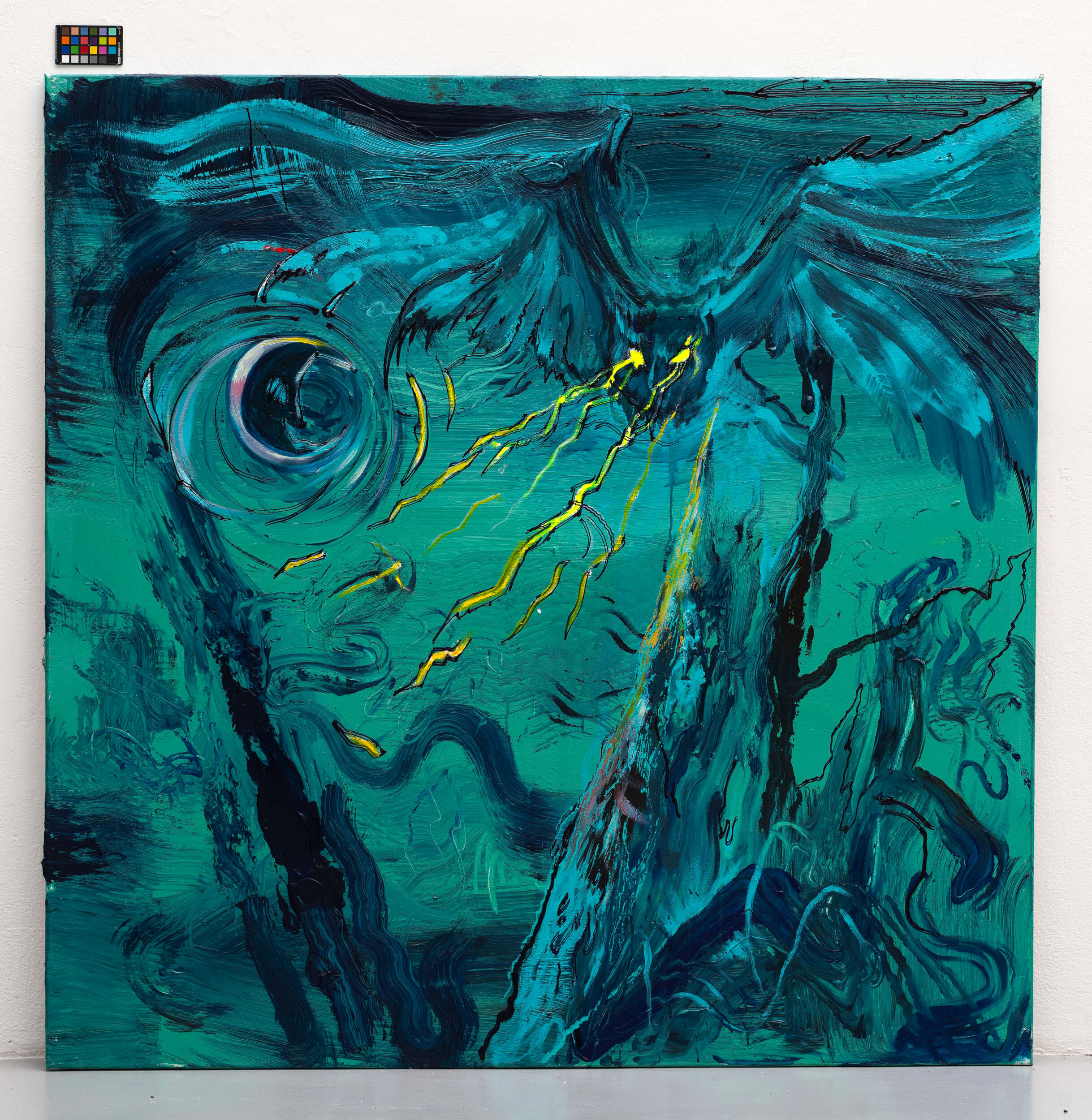 Důležitou, ač ne fyzicky přítomnou roli hraje člověk také na plátnech inspirovaných cestou do Konga, kterou Salajka podniknul spolu s dalšími umělci na podzim roku 2024. Ohňoví démoni, vodní živly či bouřkové mraky se na obrazech objevují jako personifikované přírodní síly, které na sebe člověk vypouští svými necitlivými a arogantními zásahy do přírodních ekosystémů. Tajuplnost a symbolickou rozervanost přírody tak na plátnech doprovází i její tajemně nebezpečná podoba, jež hrozí slepému člověku děsivými silami své msty.