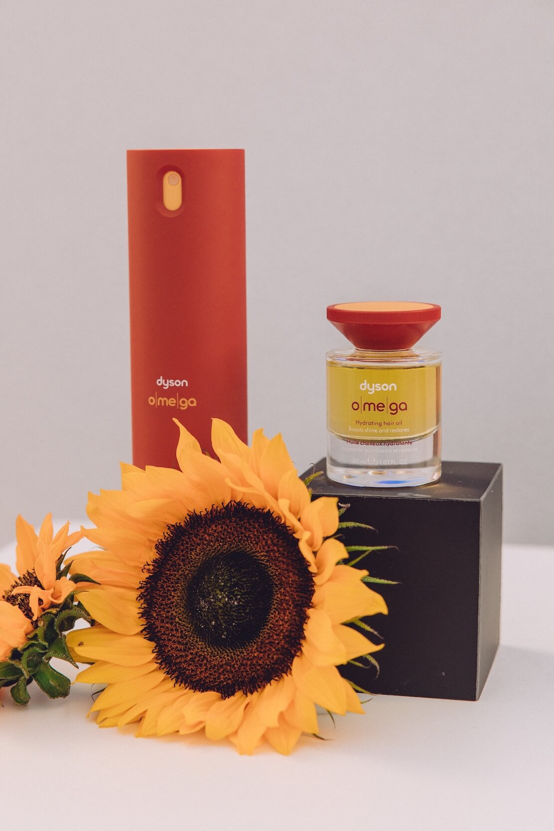 Společnost Dyson představuje svou druhou řadu vlasových přípravků, řadu pro výživu vlasů Dyson Omega™. Inženýři společnosti Dyson spojili 13 let zkušeností v oblasti zemědělství s 12 lety výzkumu vlasové vědy a zaměřili se na přírodní ingredience, aby vyřešili problém suchých vlasů. Tato řada je unikátní jedinečnou směsí sedmi olejů bohatých na omega mastné kyseliny, včetně slunečnicového oleje sklizeného na vlastních farmách Dysonu v britském Lincolnshire. Obsahuje hydratační vlasový olej, který vlasy posiluje a obnovuje a bezoplachový kondicionér ve spreji, který vlasy vyživuje a usnadňuje jejich rozčesávání. Produkty poskytují okamžitou a dlouhotrvající výživu pro všechny typy vlasů.