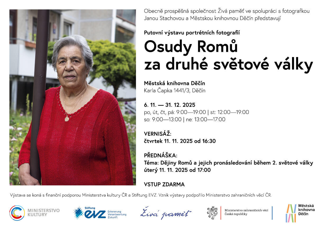 V Městské knihovně Děčín (Karla Čapka 1441/3, Děčín) se v úterý 11. listopadu 2025 od 16:30 uskuteční vernisáž výstavy portrétních fotografií „Osudy Romů