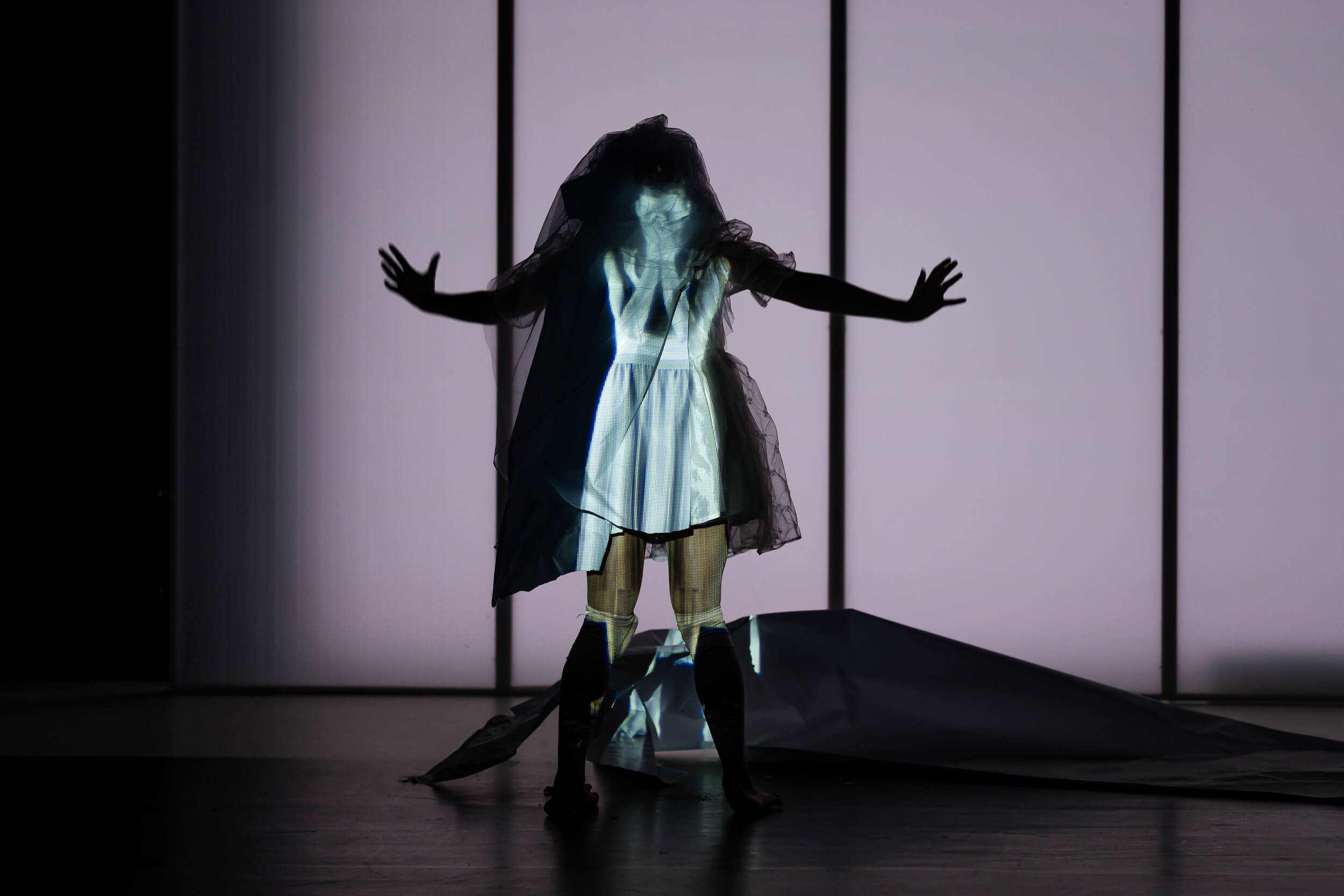 Dílo však není jen temné. Katarzním bodem celého představení je scéna s mečem, skrze níž se performerka pomyslně prosekává vazbami, které ji držely v toxickém vztahu, a stává se tak konečně opět volnou duší. Meč zde není brán jako zbraň, ale jako akt osvobození. Akt znovunabití sebevědomí a síly. Nezpůsobuje rány, naopak se stává nástrojem k pochopení jizev z minulosti, které nezakrývá, nestydí se za ně, ale má nad nimi kontrolu. Tento přístup k uchopení vlastních ran je inspirován japonským přístupem k životu, který se prolíná celou inscenací – od zmíněné cesty mečem (japonsky kenjutsu), ze které autorka vychází, přes japonskou kaligrafii až po tradiční výrobu papíru.