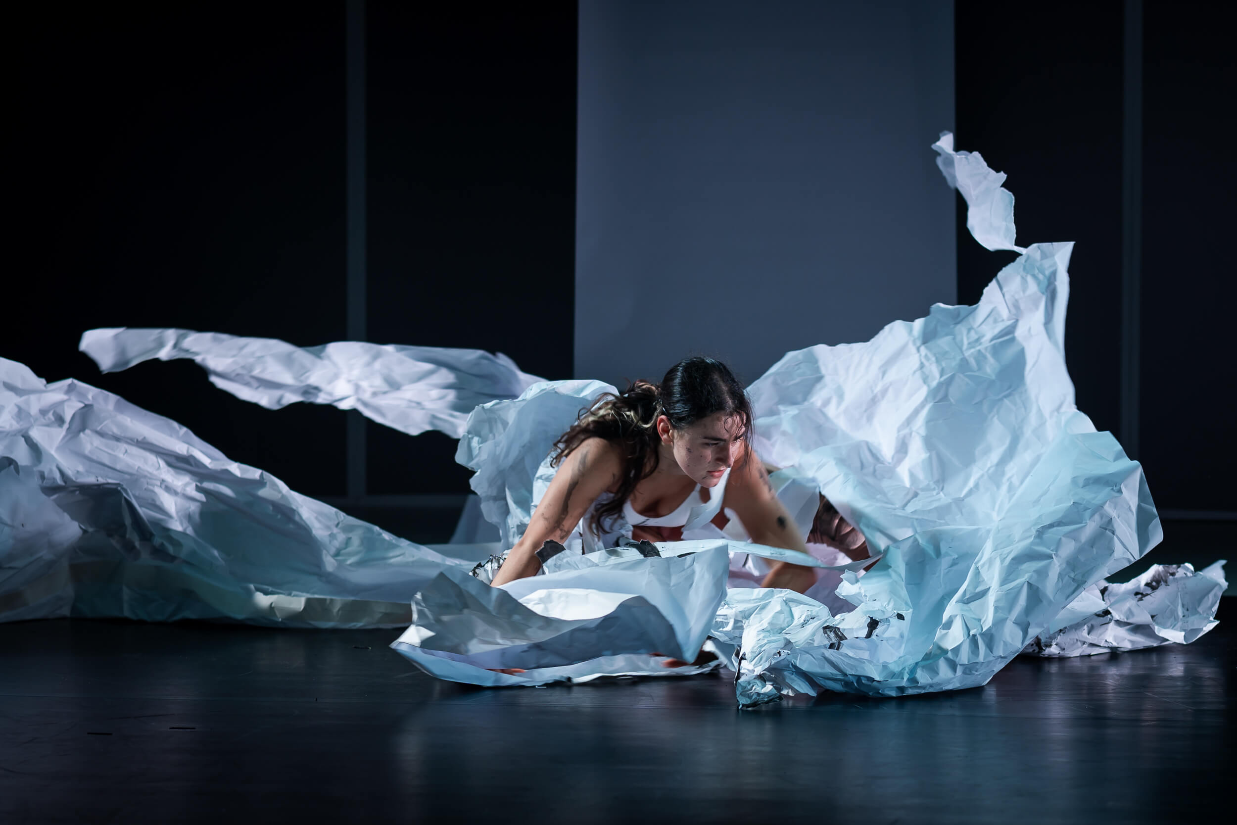 Celým představením se kromě forem útlaku a tísně prolíná jeden důležitý scénografický prvek, kterým je papír. Papír jako čisté nepopsané plátno, následně jako něco, co může být zmuchláno, počmáráno, znehodnoceno. Ke konci je papírový závoj a s ním i závislost na toxickém vztahu roztrhán, rozmixován a rozmělněn doslovně na papírmaš. Rozmixování je zde metaforou pro přeseknutí toxického vztah a znovunalezení sama sebe, jako stromu, o který se můžeme opřít.