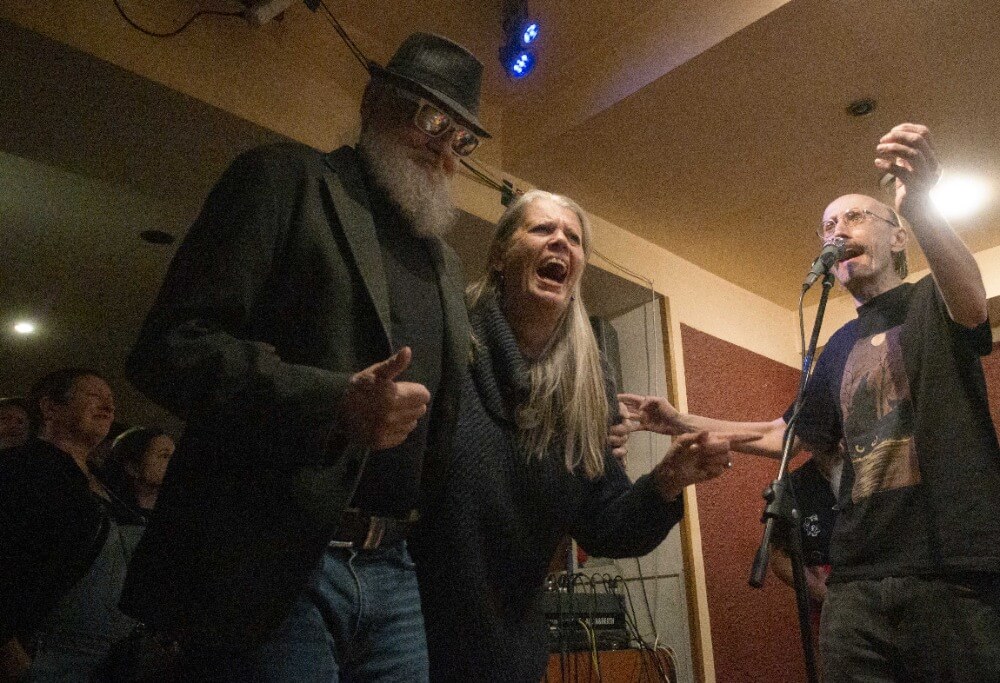 A v zaplněné hospodě z muzikantů nebyli sami, za mikrofonem se dále vystřídali namátkou třeba Karlův někdejší spoluhráč z Hudby Praha Vladimír Zatloukal, Hana Lundiaková, Pepa Lábus anebo Štěpán Málek. Ten si k tomu taky zahrál na foukací harmoniku a nezapomenutelná byla zejména jeho verze Hudsonských šífů a její svérázné frázování, z něhož se jejich tvůrci Wabimu Daňkovi kdesi v ráji musely důkladně protáčet panenky. Ke konci večera definitivně padly hranice mezi vystupujícími a publikem a v sálku zpívalo všechno, co mělo hlasivky.