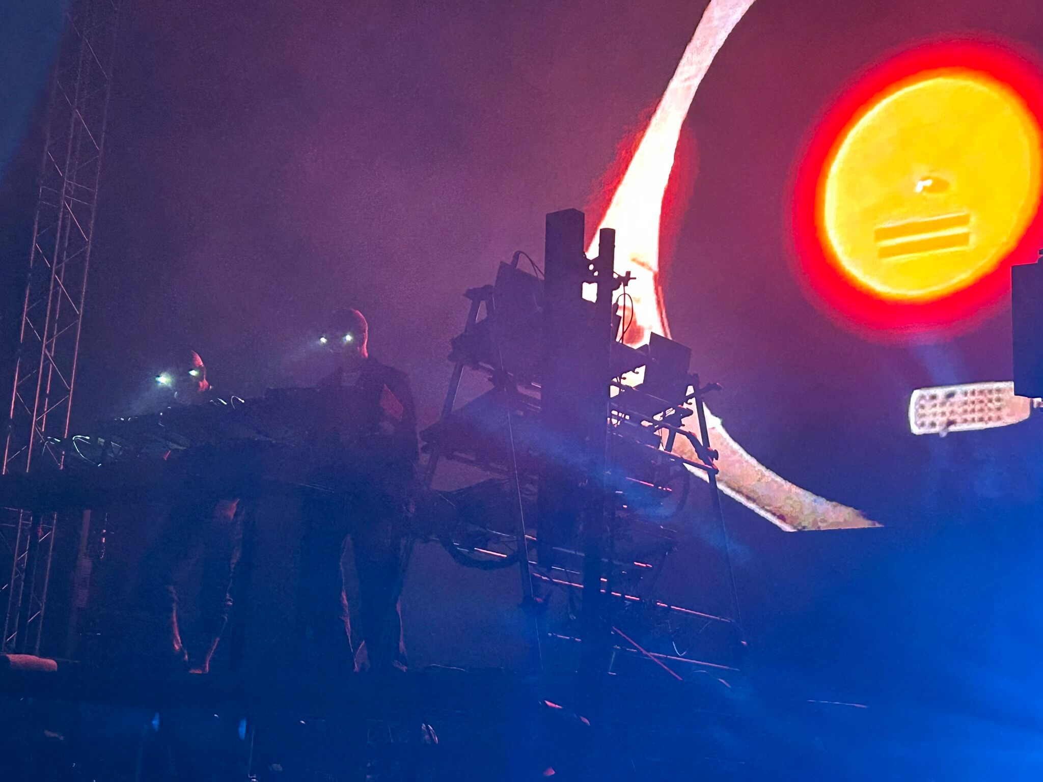 No a pak už Orbital, pro mě jednoznačný top festivalu. Nahlas, krásně, analogově, špičková světla a projekce. Navíc nám dali 12 minut popovídání a vzpomínání.