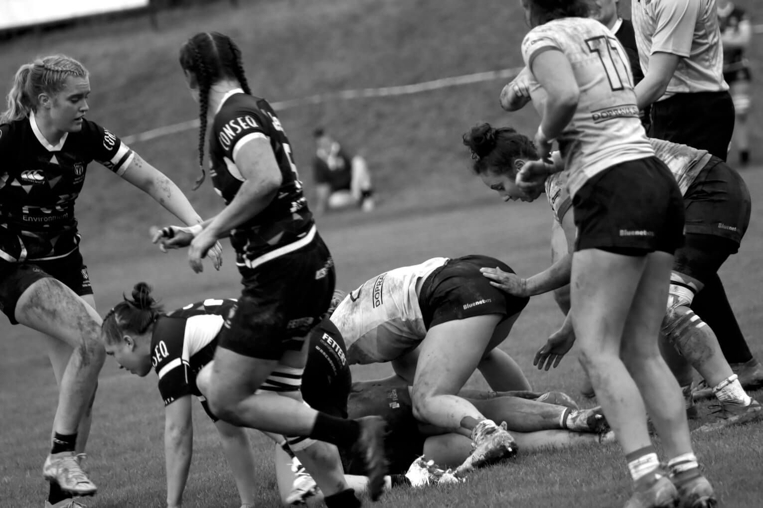 Jednou ze základních standardních situací ragby je „ruck“ (čti rak). Tento proběhl v krásné blátivé louži.