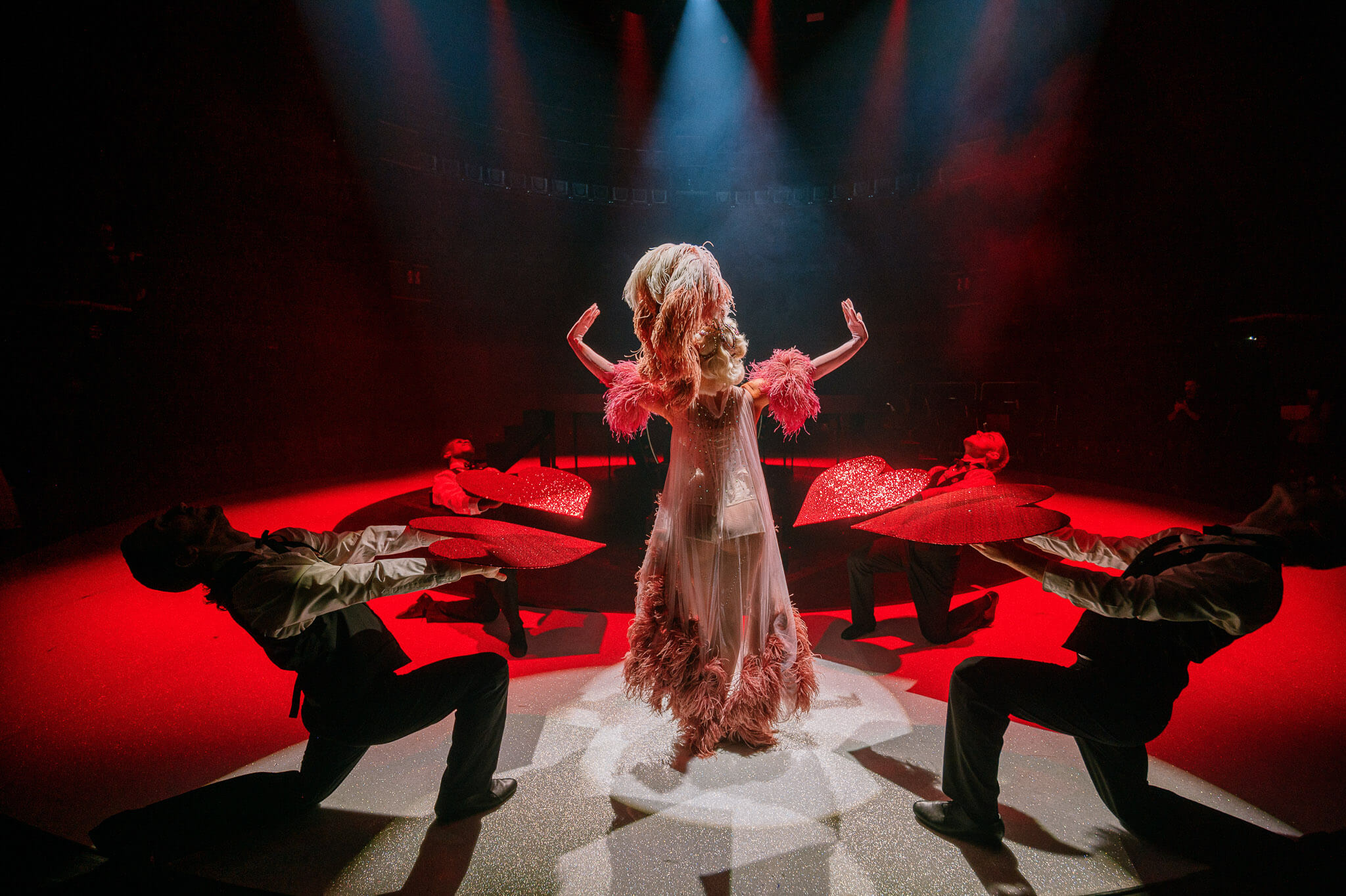 Je to kabaretní show, se kterou si chceme hrát a posouvat ji dál. Což doufám, že se nám povedlo – třeba spojením kabaretní linky s akrobacií Michiela Tange van Leeuwena, který je prostě „one of a kind” a celé to posouvá úplně jinam. Akrobacie je navíc něco, co české publikum miluje. Obecně mám pocit, že Češi milují, když je něco efektní, velké, velké kostýmy… a hlavně, když je vidět, že na tom člověk strašně moc trpěl, že je v tom pořádně pot a krev. Aby měli pocit, že si svým způsobem „zasloužili”, že dali peníze za vstupenku.