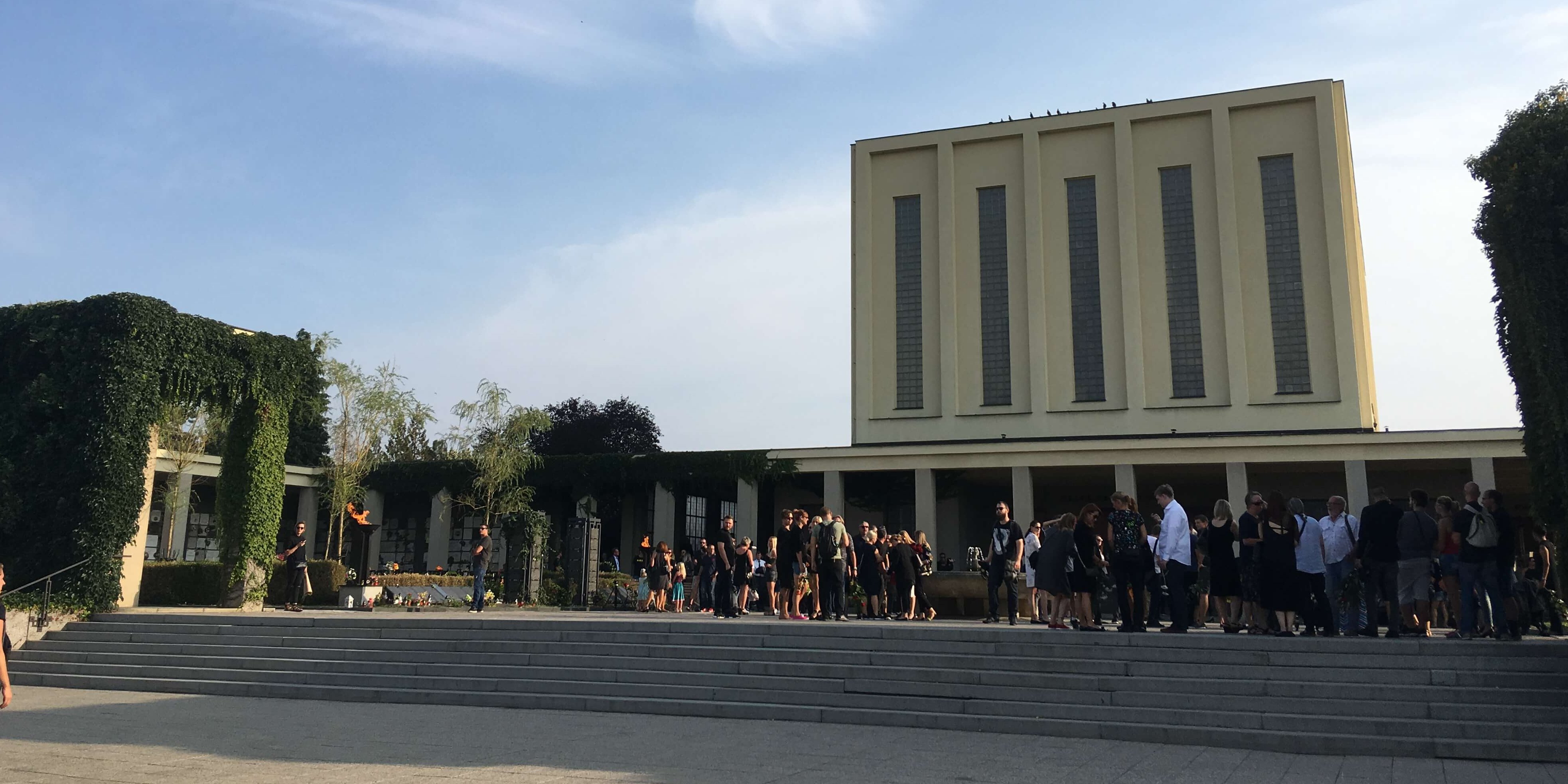 Obřad byl důstojný a lehce netypický, trval kolem půl hodiny, kromě krátkého přivítání se nemluvilo. Před krematoriem i v něm zněla house music a na místě, kde bývá rakev, stály osiřelé gramce, mixpult a jméno toho, kdo chybí. Potlesk na závěr byl dlouhý, energický a plný emocí. Nezapomenem.