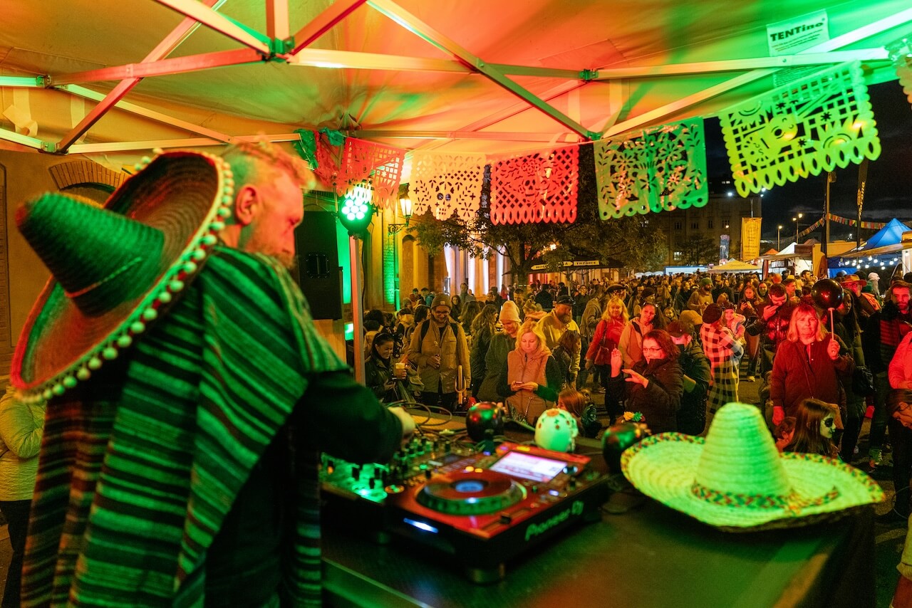 Během oslav v Holešovické tržnici bude Tržní náměstí patřit food truckům a stánkům s autentickou mexickou kuchyní, ale najdete zde i další pokrmy z Latinské Ameriky a několik stánků s běžnou nabídkou pro ty, kdo nemusí pálivé. Chybět nebude ani tekutá pocta Mexiku. Pivovar Falkon totiž uvařil limitku Halcón – pivo inspirované latinskoamerickými chutěmi.