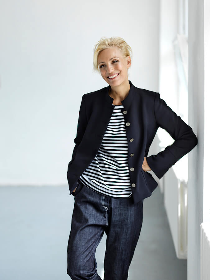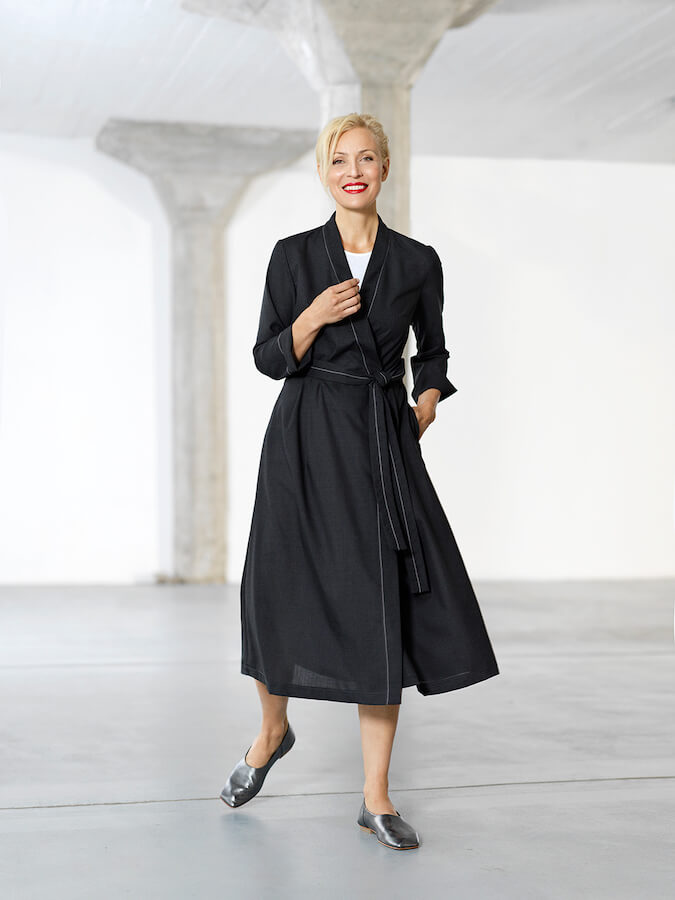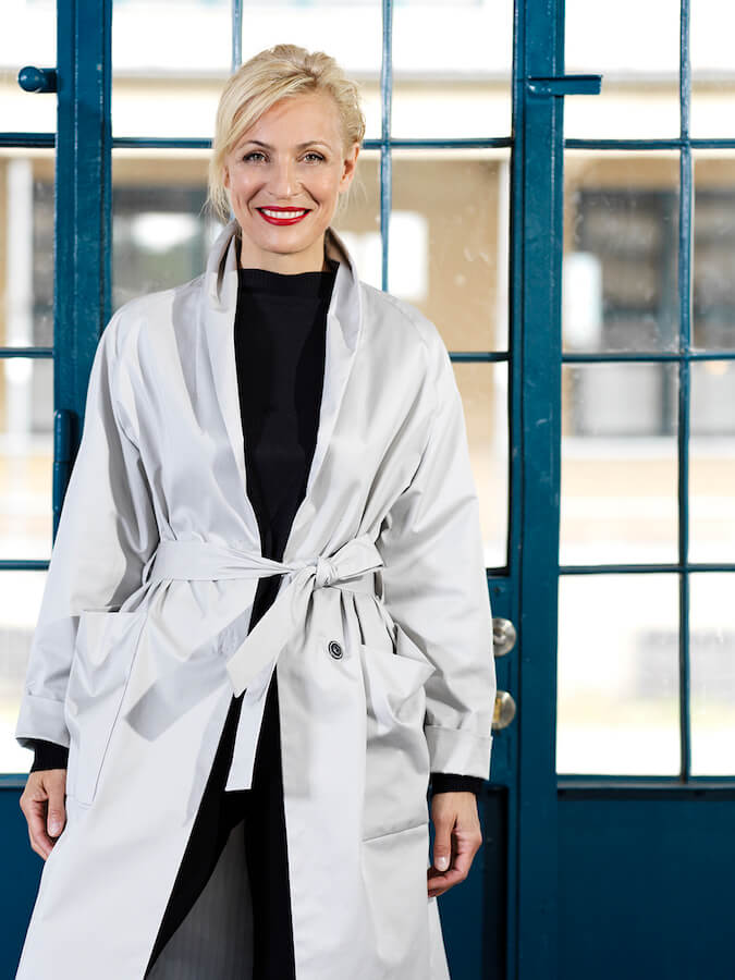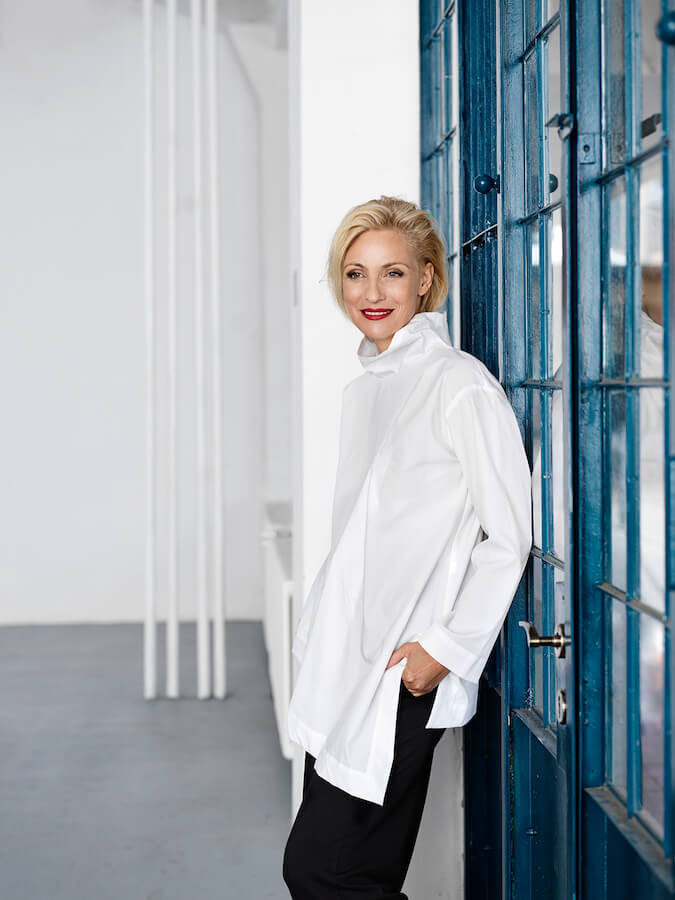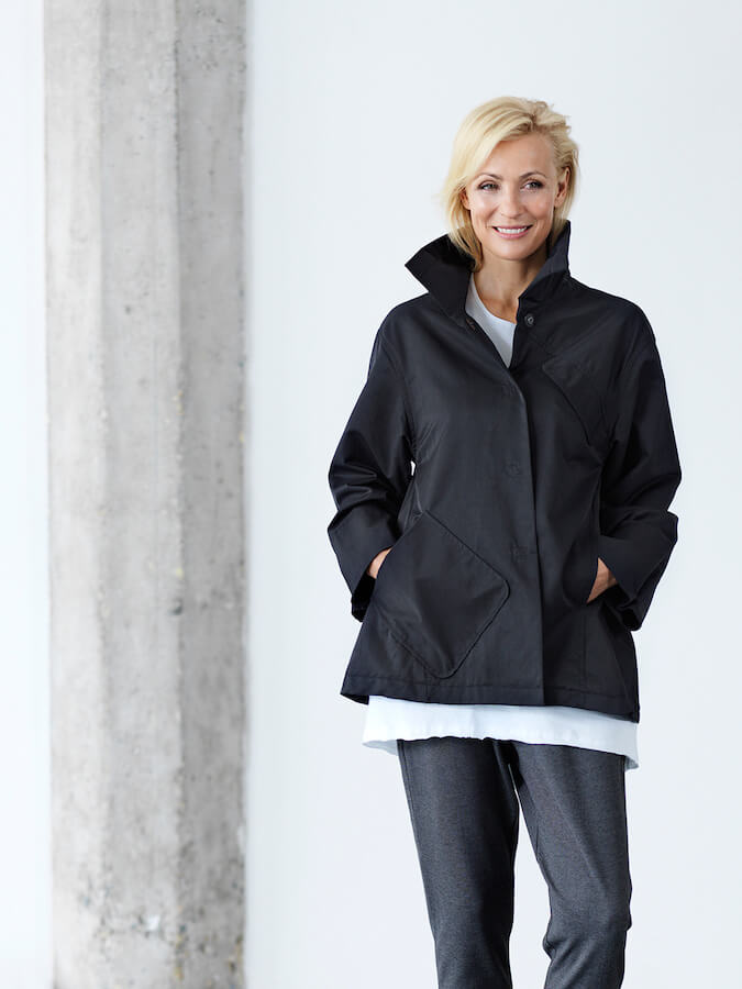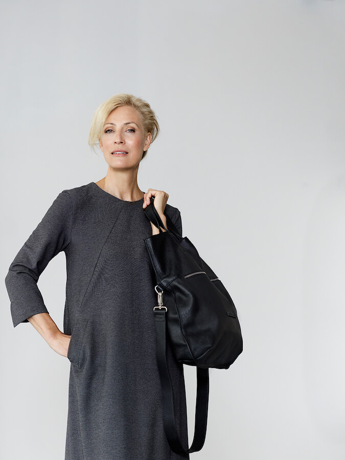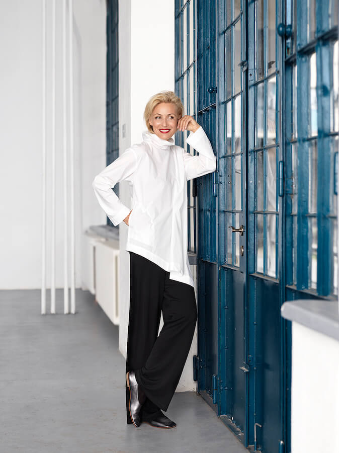 „Kolekce má dvě linie,“ řekla nám Ivana Šafránková. „Jedna je pohodlná, z kvalitních úpletů: mikiny, úpletové kalhoty – tepláčky nebo sarouelky, šaty, sukně a samozřejmě trika, nejen v nové proporci boxy.“ K téhle části kolekce, kterou často zdobí roztomilé kapuce, se skvěle hodí tenisky.