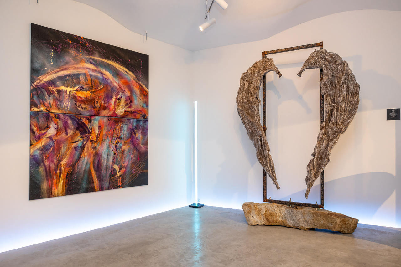 Andrea Ehret ve svých obrazech skrze kaligrafii a mixed media zachycuje křehkost lidskosti, zranitelnost a krásu přítomného okamžiku. Její vizuální poezie zve k zamyšlení a vnitřnímu dialogu.