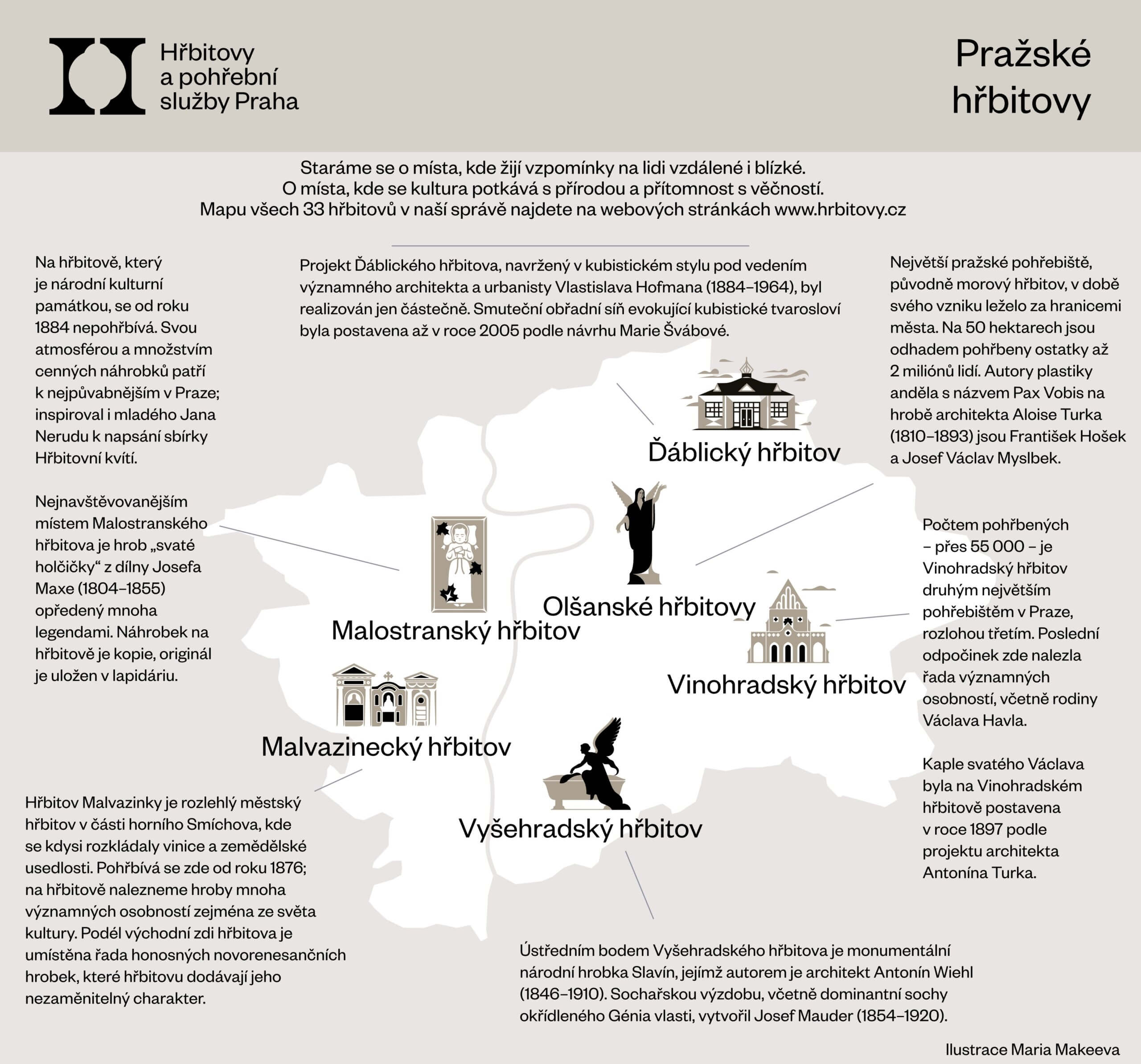 Někdo nemá důvod chodit na hřbitov vůbec, jiný tam zavítá tradičně na Dušičky, ale letos je k návštěvě hřbitova od důvod víc. O od pátku 18. do neděle 20. října se totiž koná na pražských hřbitovech Den otevřených dveří. Program je opravdu nabitý: na Ďáblickém hřbitově si budete moci v rámci hrobnického workshopu vyzkoušet kopání a následné spouštění rakve (není to tak jednoduché, jak to vypadá), pro odvážné je nachystána noční vycházka Olšanskými hřbitovy. Během přírodovědné vycházky vás zase možná překvapí, jak je na pohřebištích živo. Chybět nebudou samozřejmě komentované prohlídky, návštěva „alternativního“ pohřebního Ateliéru nebo pohled do zákulisí stavby moderního hostivařského urnového hřbitova, už teď nominovaného na ceny za architekturu. Převážná většina programu je zdarma, ale pozor, na některé části programu je kvůli omezené kapacitě třeba se předem registrovat. Informace o programu, vstupném a podrobném harmonogramu najdete na stránkách akce.
